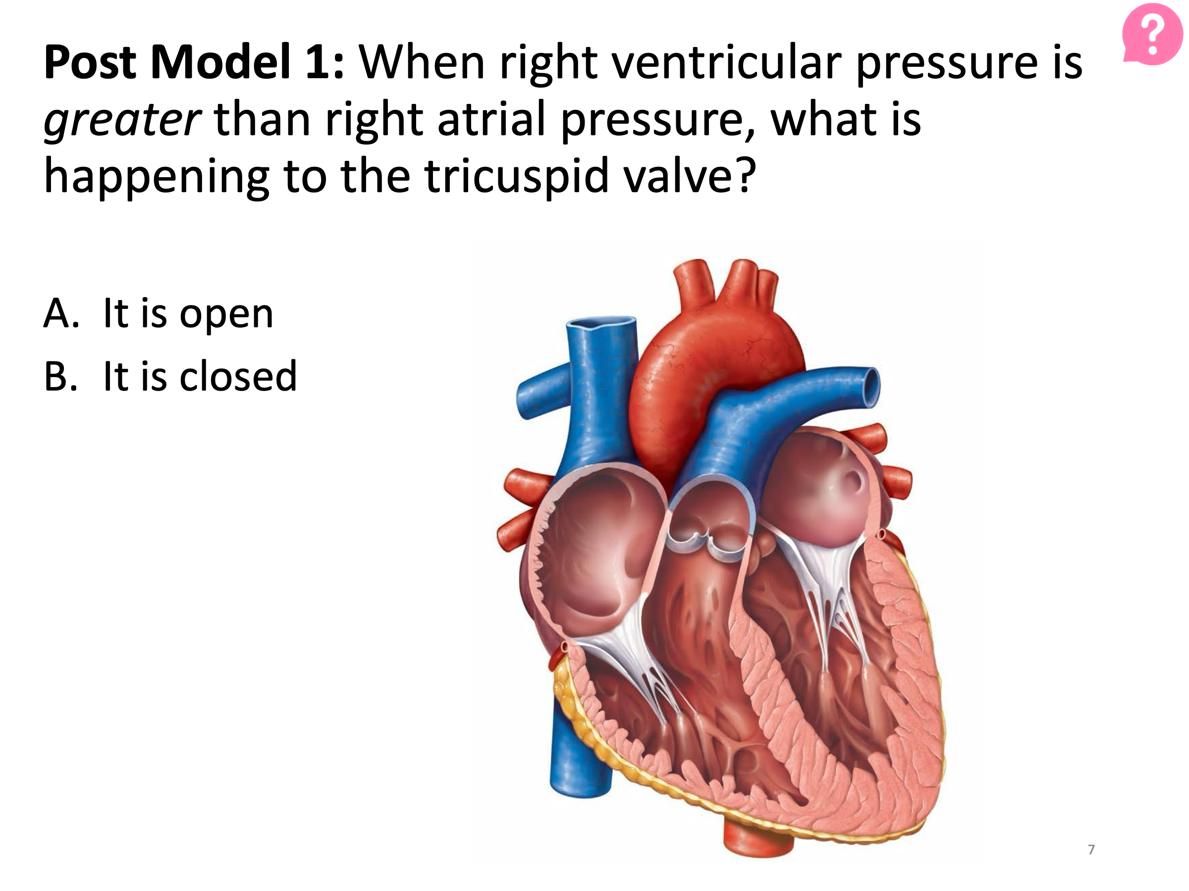A key formula of POGIL is to have students "explore" a model, then "invent a key concept", and then "apply" it. Shown below are a few slides from one POGIL lesson on pressure and valve dynamics in the heart. Click on each slide title to view a larger version of the image.