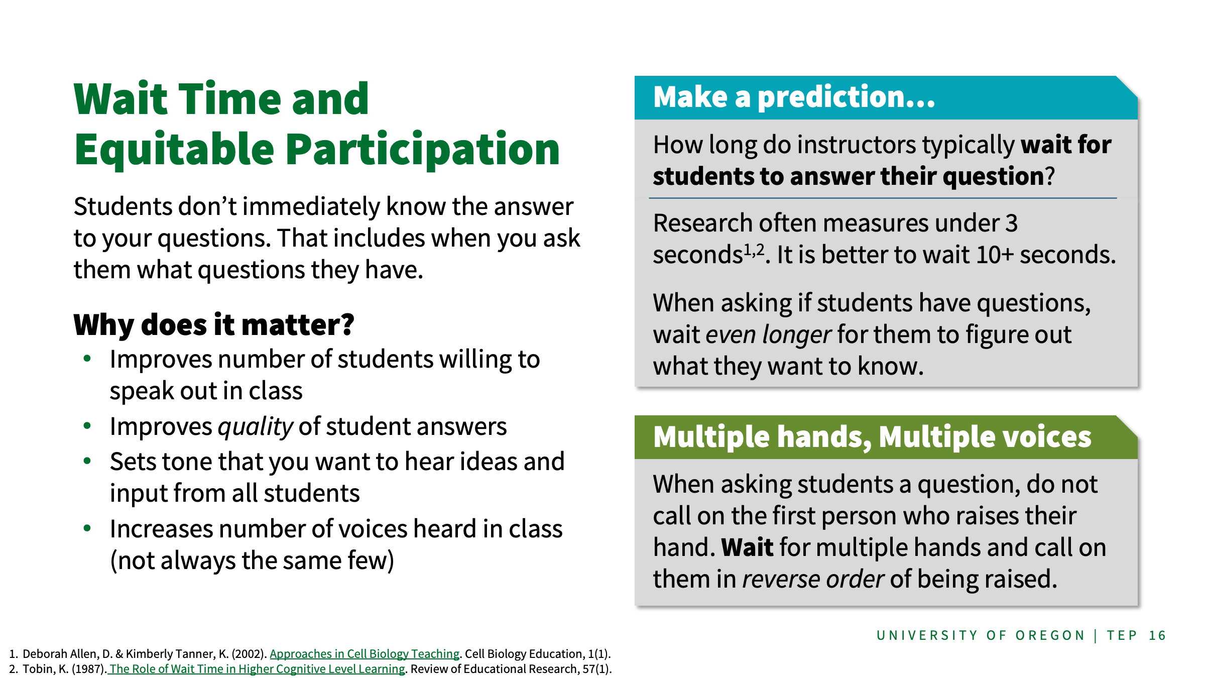 - Discussion boards (with resources) for how to elicit student thinking, equitable teaching practices, and archiving TA experiences when running labs.